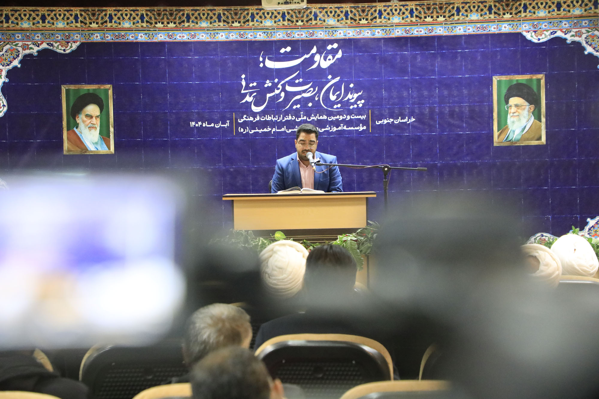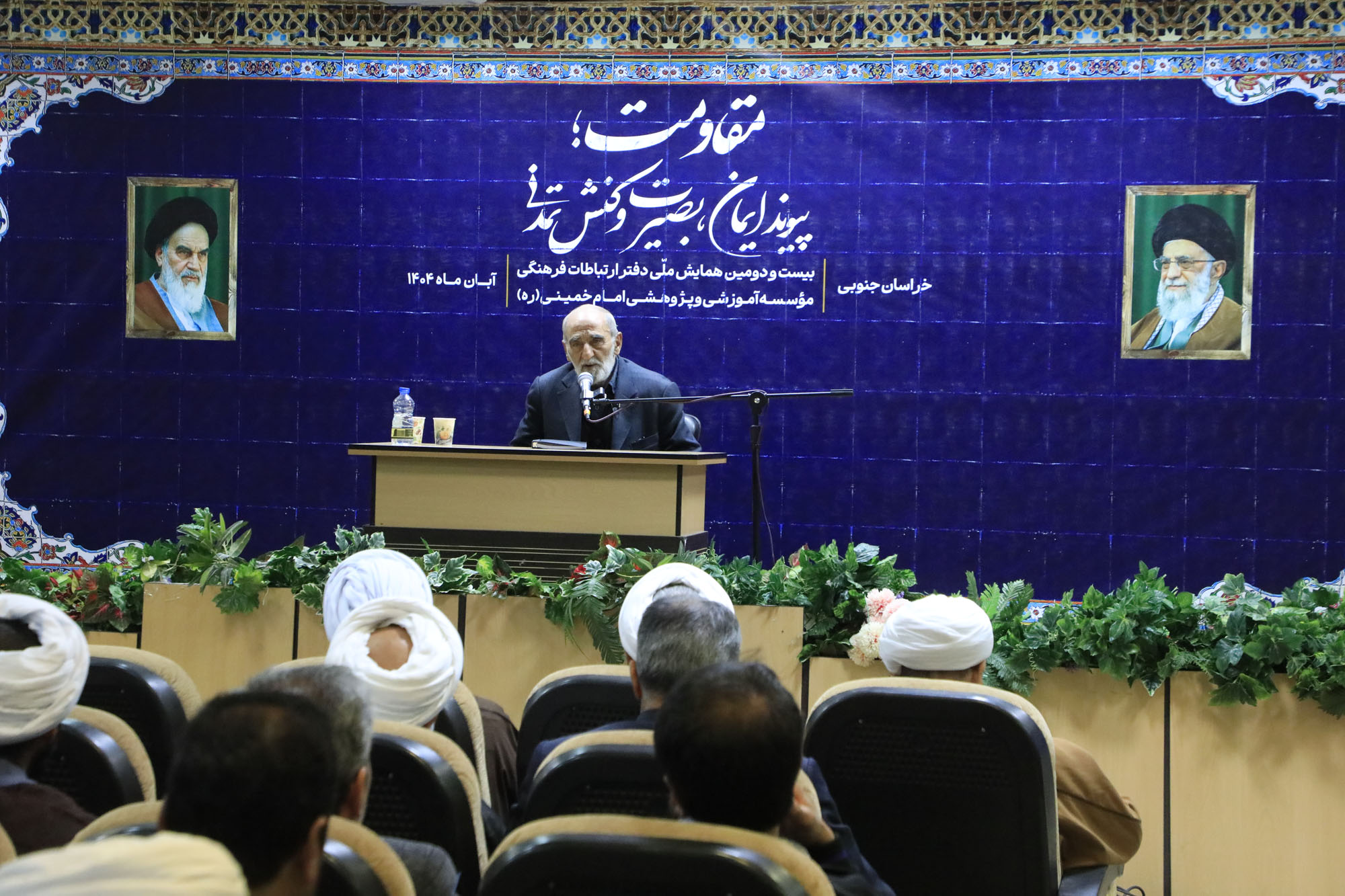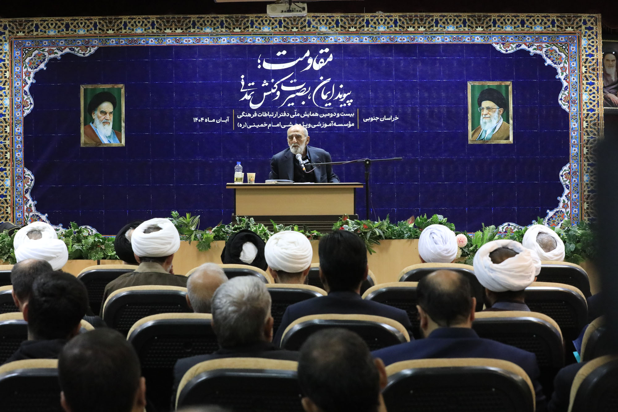 همایش مقاومت؛ پیوند ایمان، بصیرت و کنش تمدنی با حضور اساتید کشوری آیت الله رجبی، حجت الاسلام دکتر علی مصباح یزدی، حسین شریعتمداری، حجتالاسلام حسین طائب، حجتالاسلام سلیمانی امیری، حجت الاسلام و المسلمین سید علیرضا عبادی نماینده ولی فقیه در خراسان جنوبی برگزار شد.